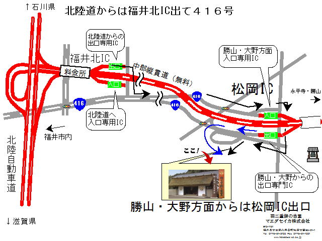 北陸自動車道「福井北IC」下車 永平寺方面へ(国道158号線)1分